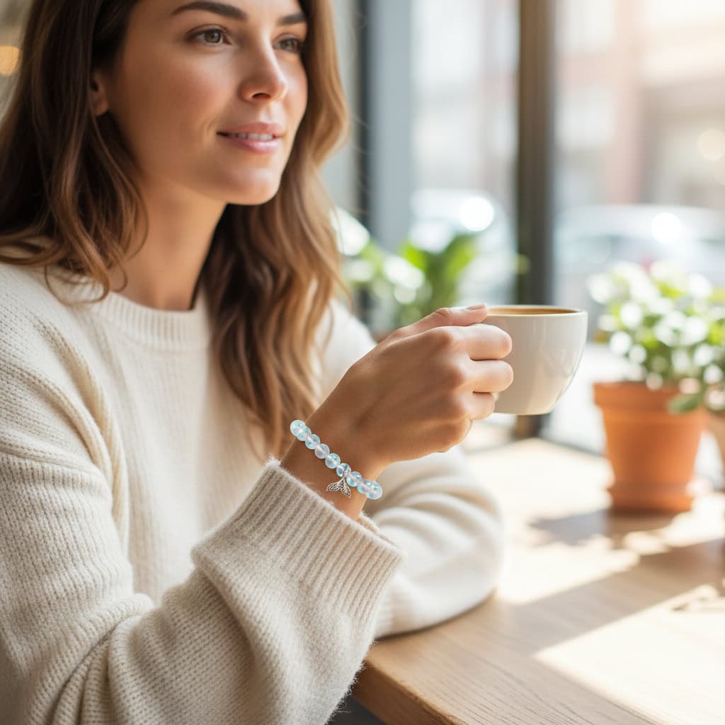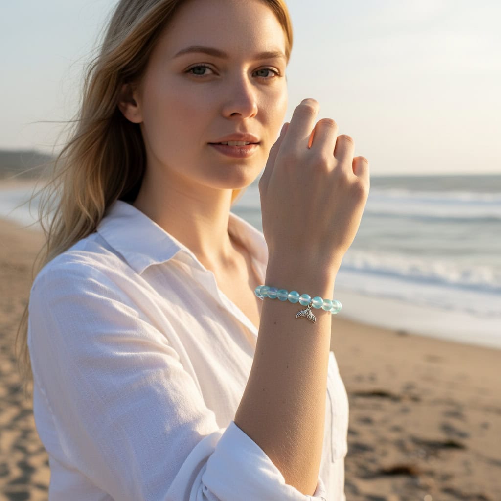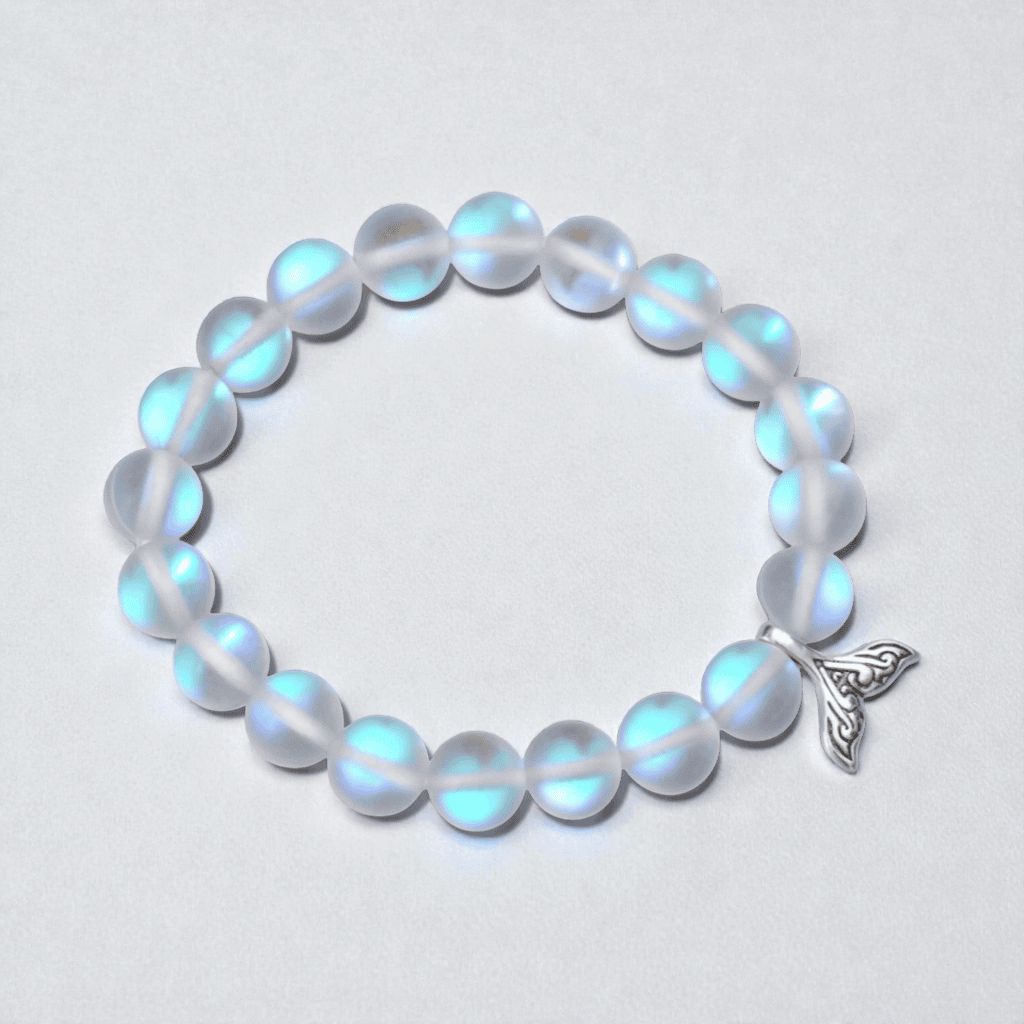 Anchored by a delicate, detailed silver mermaid tail charm, this piece is more than just jewelry, it is a connection to the water element and the mysteries of the deep. Whether you are sipping coffee in a cozy café or walking along the shoreline, the ethereal glow of this bracelet serves as a reminder of your own inner magic.
